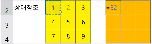 상대참조는 참조한 셀의 이동이 자유롭다 (자동 채우기O)