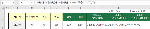 물론 이런 식으로 직접 입력해도 된다 (=함수입력 -> [Tab] -> 범위 설정 -> [Enter])