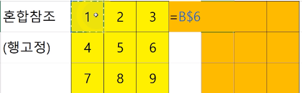 혼합참조는 참조한 셀이 열 or 행단위로만 이동이 가능하다 (제한적 자동 채우기)