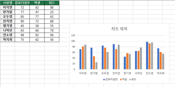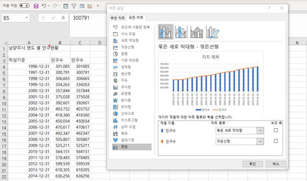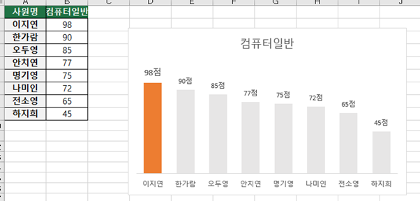 차트요소와 축 서식을 깔끔하게 바꿔주고,,