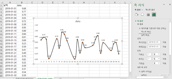 날짜의 경우 불연속적인 데이터여도 자동으로 연속적으로 축이 생성된다