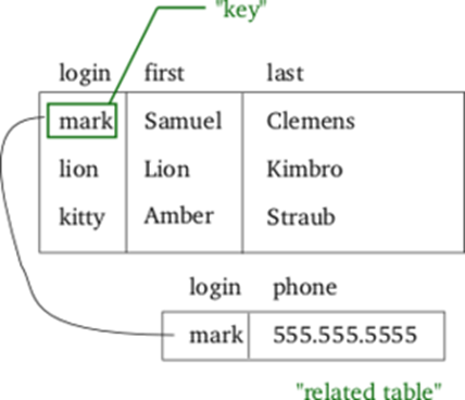 이는 데이터베이스(스키마) 내부 각각 테이블의 데이터들이 key를 공유하며 엮이는 구조이다!