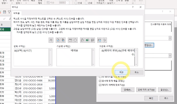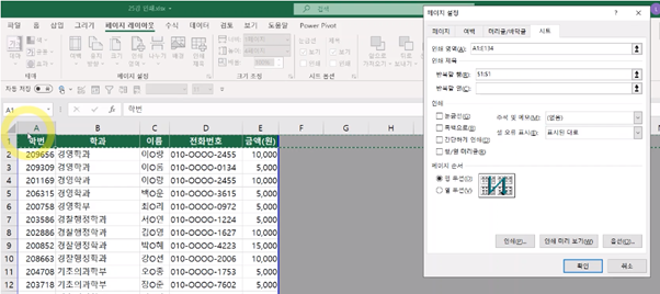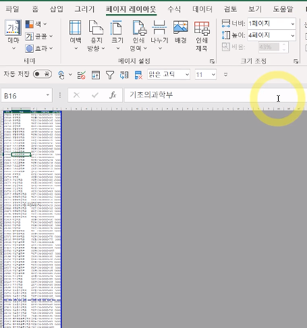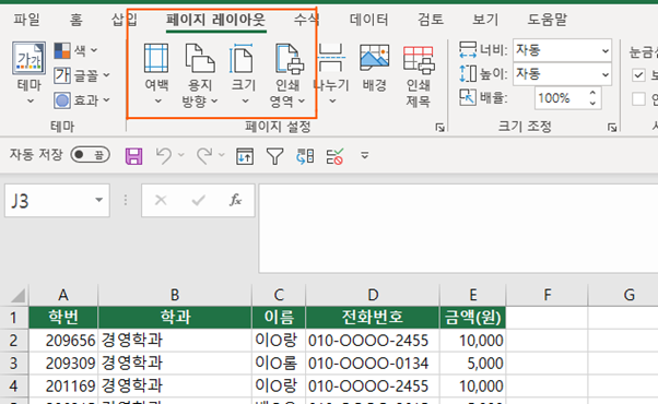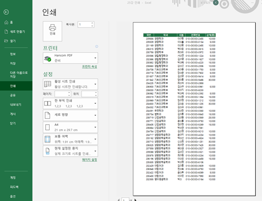 - 인쇄 영역에서 자동으로 인쇄 영역을 설정