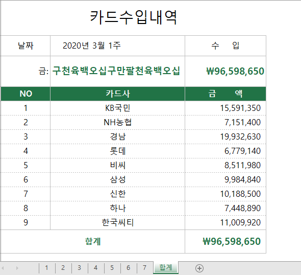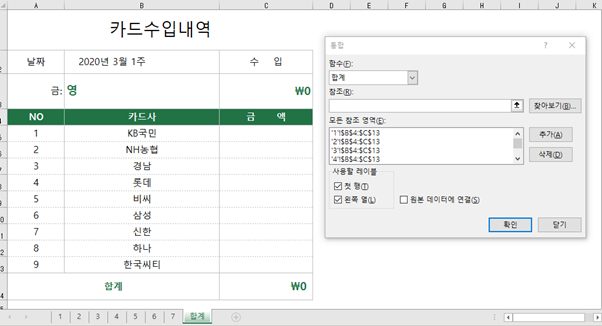 모든 시트의 같은 위치에 있는 값을 더하려면,,