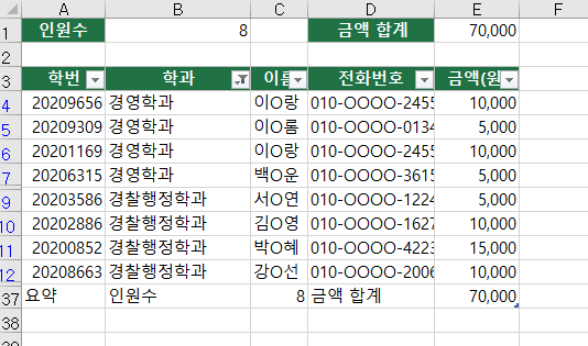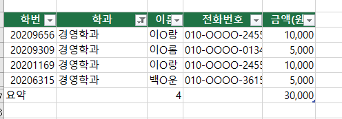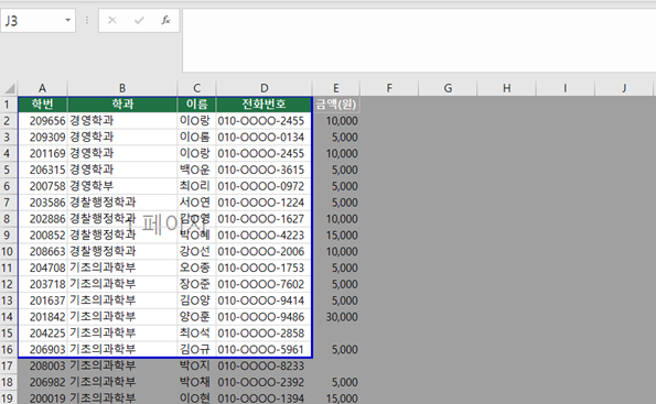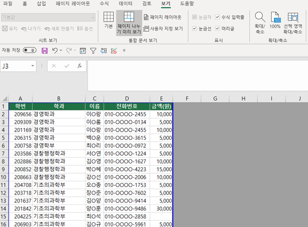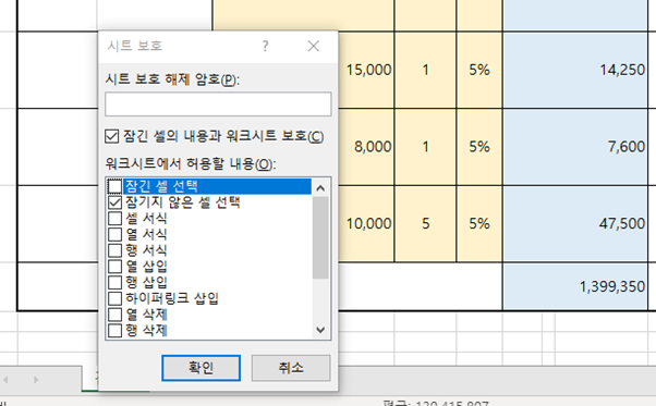 자동으로 계산되는 셀(파란색)은 잠가서 보호하자