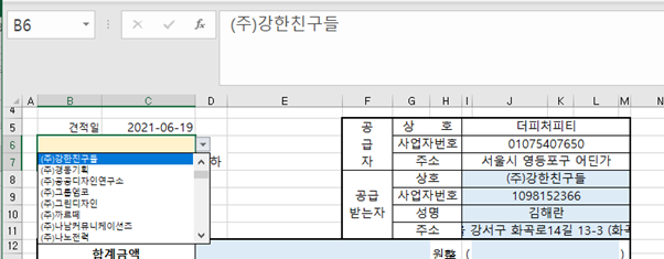 목록형 데이터 유효성 검사와 VLOOKUP함수를 활용하면 자동으로 참조 값을 바꿀 수 있다
