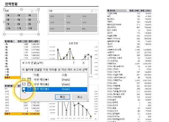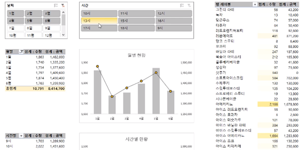 피벗테이블, 슬라이서, 차트를 활용해서 대시보드형 보고서를 만들 수 있다!