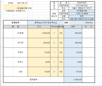 참조와 표시형식을 적절하게 사용해 자동 견적서를 구성하자!
