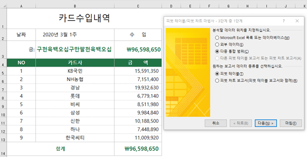피벗 차트 마법사를 활용해 다중 시트로 피벗 테이블을 만들어보자