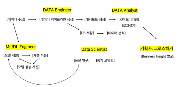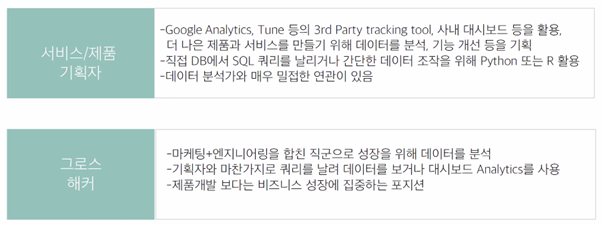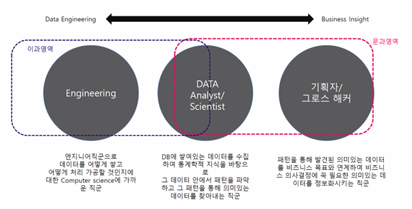 - 기본 지식 정도만 갖춘 문과생은 데이터 분석가 혹은 기획자/그로스 해커에 적합