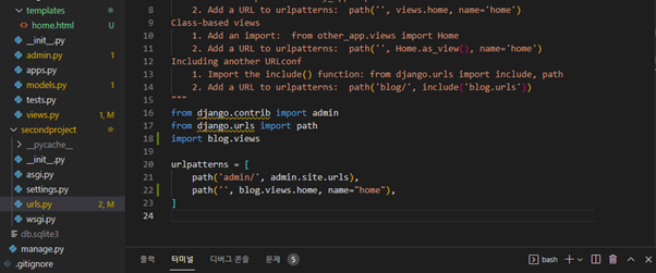 views.py에 models.py의 Blog 객체 목록(쿼리셋)을 받고 home.html을 띄우도록 코드 작성