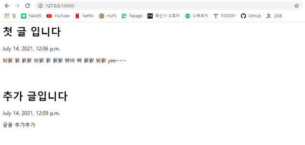 for 탬플릿 태그로 blog.all을 순회하면서 blog 변수에 넣고 model의 변수 하나하나를 출력하는 것이다