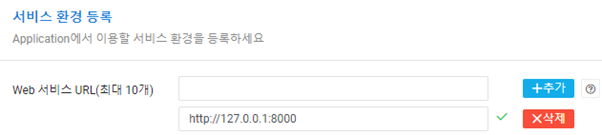 Application 등록 > 이름 설정 > Web Dynamic Map 체크 > 서비스 환경 등록