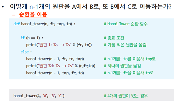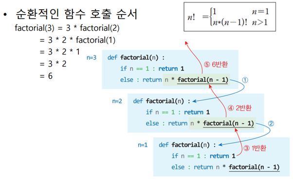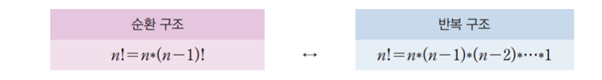 함수가 자기 자신을 다시 호출(재귀)해 문제를 해결하는 순환적 프로그래밍 기법이다