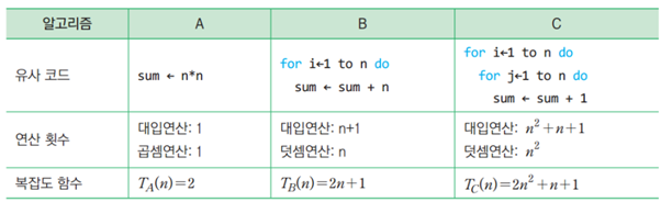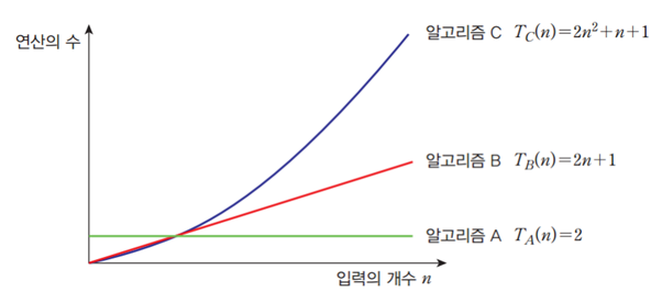 ~알고리즘이 수행하는 연산의 횟수를 시간 복잡도 함수 T(n) 로 분석한다