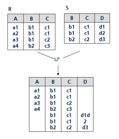 아예 합병이 불가능한 두 relation을 억지로 합쳐 null로 표현한 경우는 외부 합집합이다