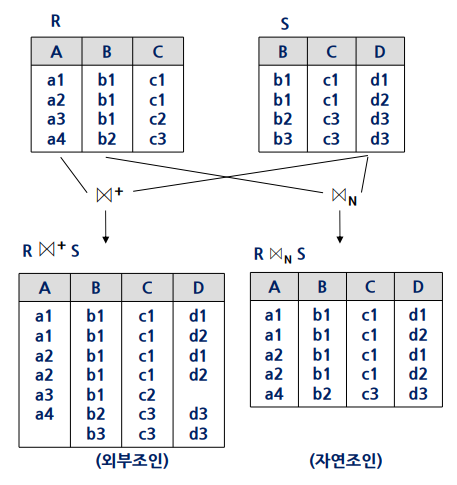 relation에 대응되는 tuple 값이 없을 경우 null로 결과에 포함시키는 조인을 외부 조인(outerjoin)이라고 한다