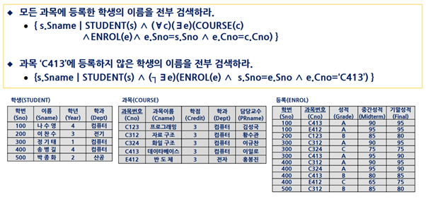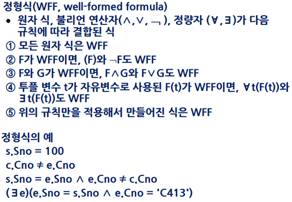 ex) STUDENT(s), s.Sno ~ STUDENT라는 릴레이션에서 튜플 s와 s의 Sno라는 attribute값