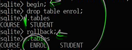 SQLite는 한 문장이 하나의 Transaction(작업 단위)로 처리됨 (begin -> commit or rollback)