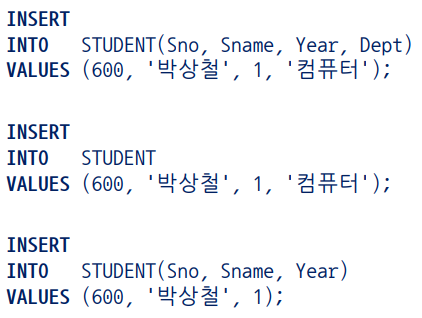 INSERT – INTO - VALUES로 레코드를 직접 삽입할 수 있다
