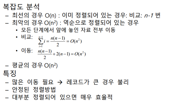 단순하지만 비효율적 방법: 삽입, 선택, 버블 정렬 등