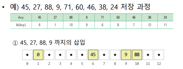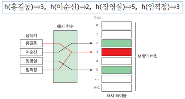 서로 다른 키가 해시 함수에 의해 같은 주소로 계산되는 충돌이 발생할 수 있다