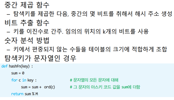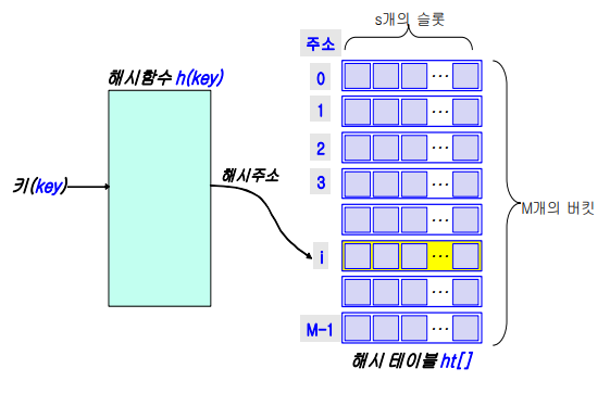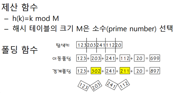 키 값에 대한 산술적 연산에 의해 테이블의 주소를 계산하는 방식으로,