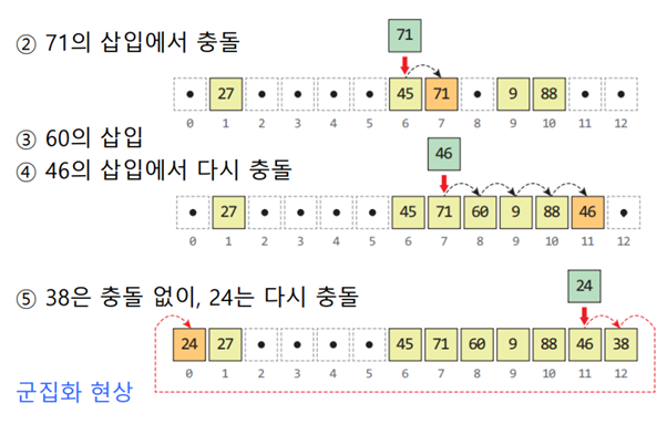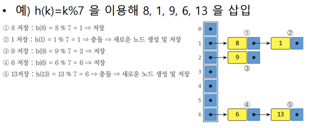 공간이 부족해서 충돌이 슬롯 수보다 많다면 오버플로우가 발생할 수 있다 (모든 자리에 충돌)