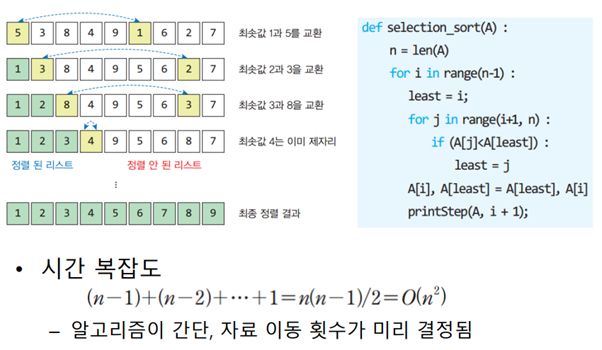 1. 선택 정렬(selection sort)