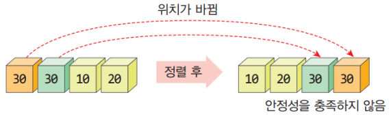 정렬 알고리즘은 1차적으로 내부 정렬(메인 메모리), 외부 정렬(+외부 기억 장치)로 나뉘며,