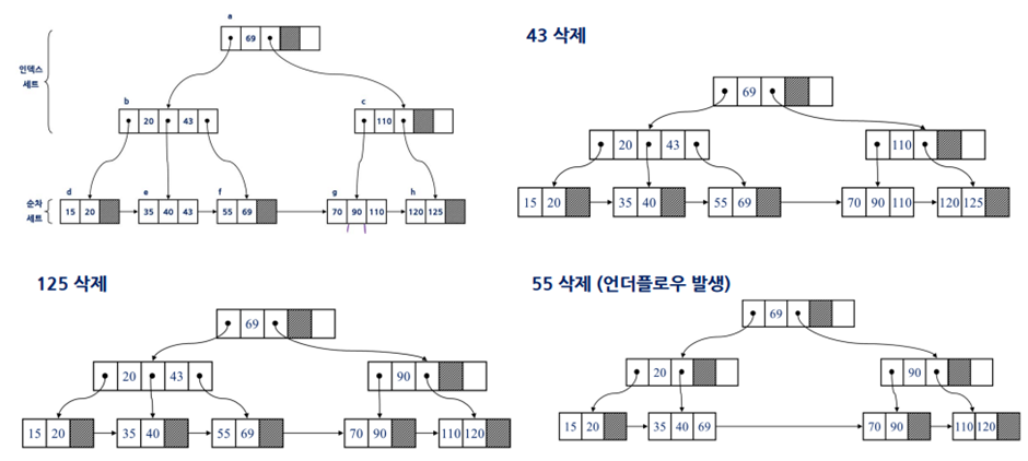 인덱스 세트와 순차 세트로 구성된 B+트리가 등장