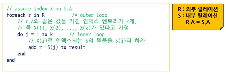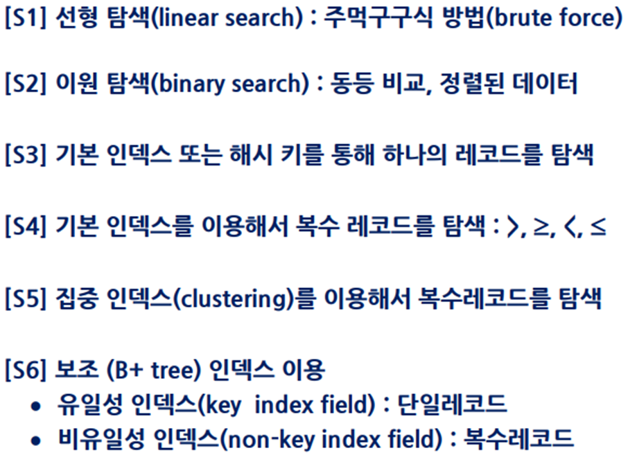 중첩 루트 / 인덱스 검사 / 해시 검사 / 정렬, 합병 / 해싱 / 방법들의 조합 등의 기법이 있다