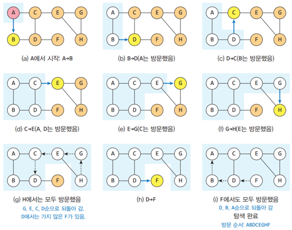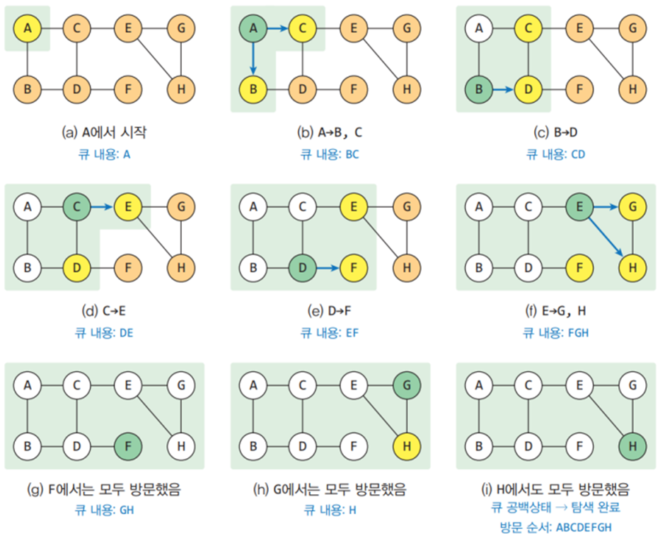 그래프의 탐색은 시작 정점부터 차례대로 모든 정점들을 한 번씩 방문하는 방법으로,