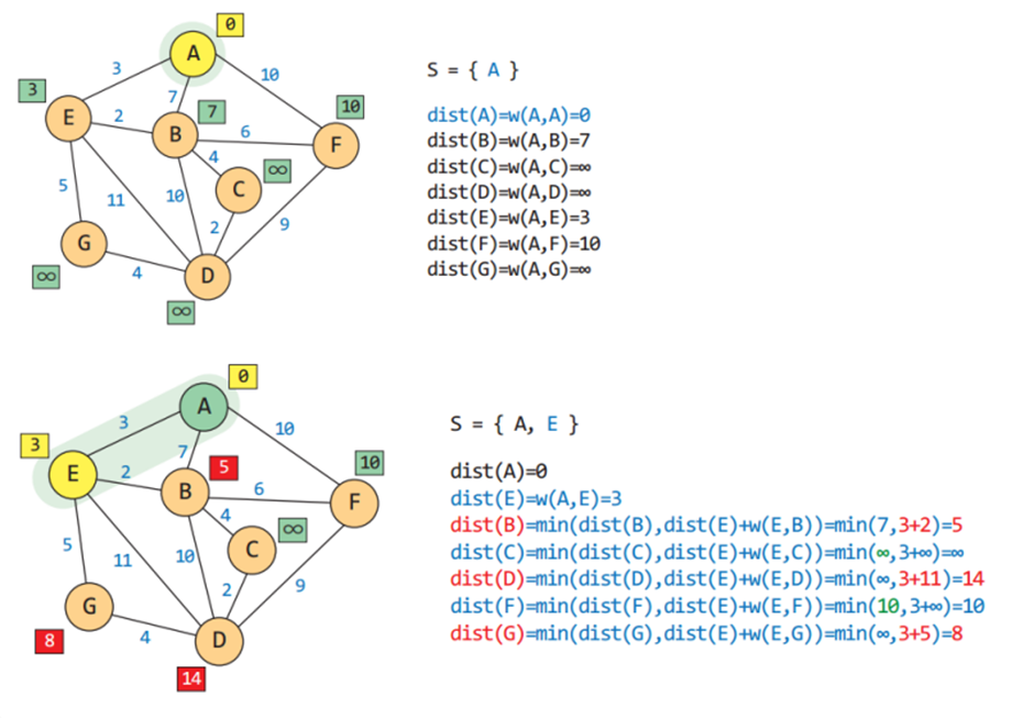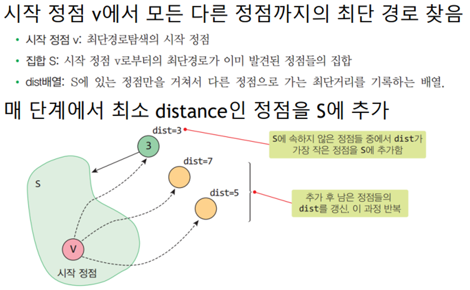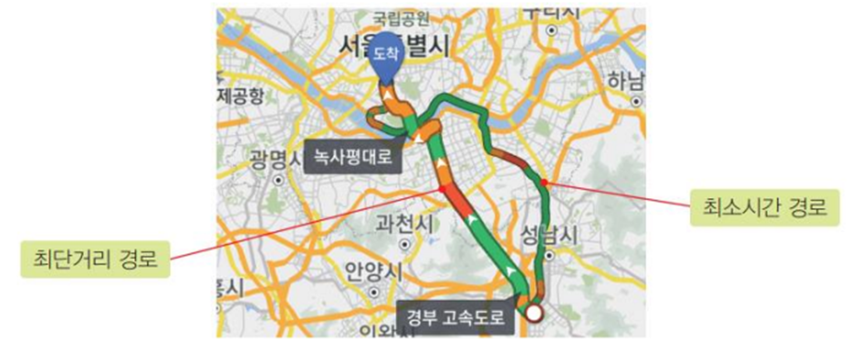 최단 경로 알고리즘이란 정점 u와 정점 v를 연결하는 경로들 중 간선들의 가중치 합이 최소가 되는 경로