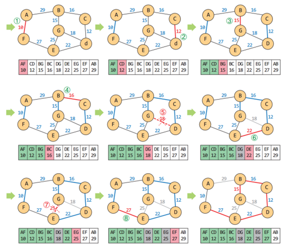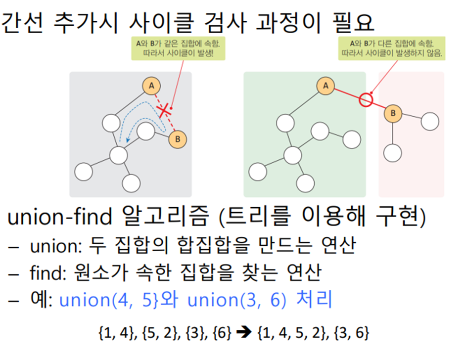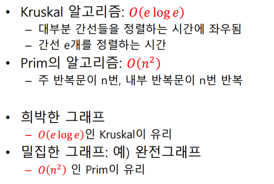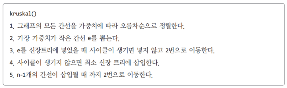 Kruskal의 MST 알고리즘은 각 단계에서 최선의 답을 선택해 최종적 해답에 도달하는 탐욕적 방법(greedy method)을 따른다