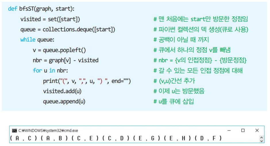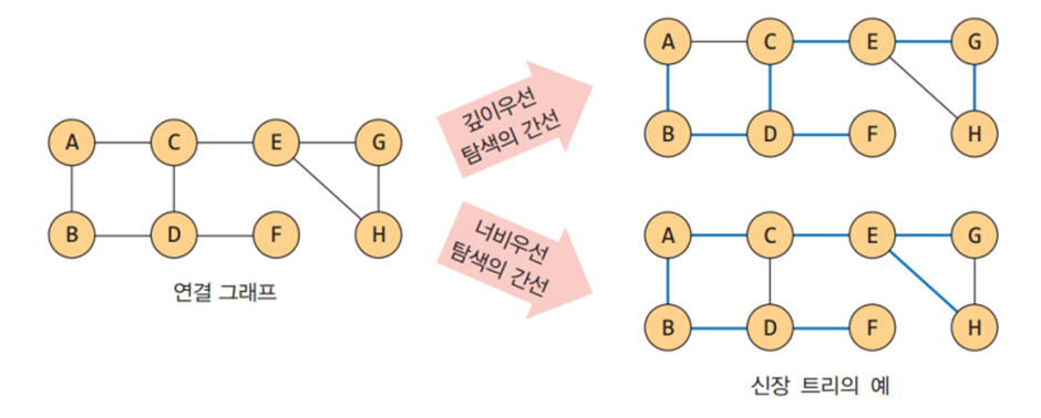 신장 트리란 그래프 내의 모든 정점을 포함하는 트리로 사이클을 포함하면 안된다