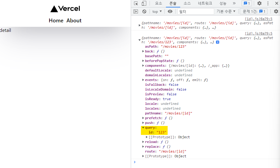 다만 router.query를 받아오는 방식은 유저가 클릭을 통해 해당 페이지에 들어왔을 때만 유효하다