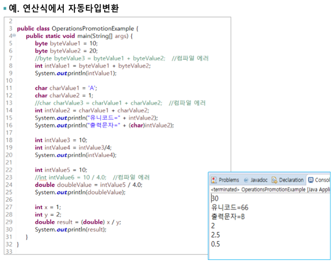 값의 허용 범위가 작은 타입이 큰 타입으로 저장될 경우 자동으로 발생함