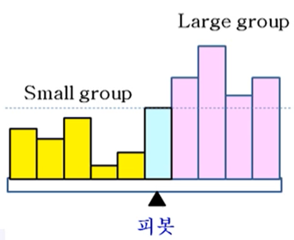- 피봇이 너무 작거나 큰 값으로 선정되는 경우 알고리즘의 수행 시간이 길어진다