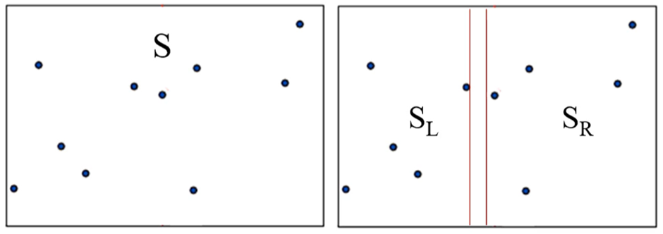 - 전처리 과정으로 S의 점을 x좌표 기준으로 정렬 ~ O(nlogn)