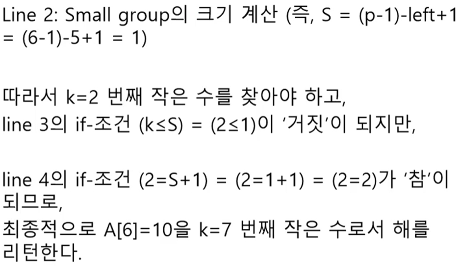 - Small group에 k번째 작은 숫자가 속한 경우: k번째 작은 숫자를 해당 그룹에서 찾는다
