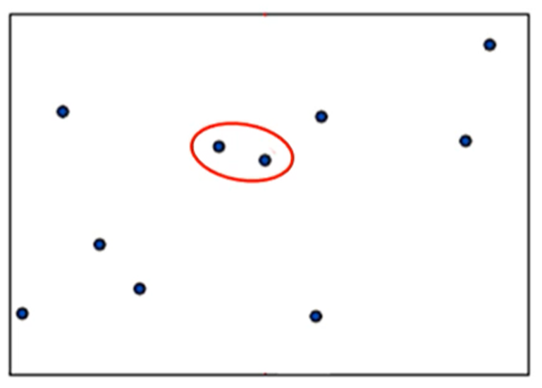 - 모든 점에 대하여 각각의 두 점 사이의 거리를 계산해 가장 가까운 점의 쌍을 찾는다