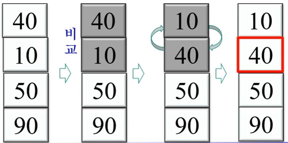 * 작은 수가 앞으로 올라오는 과정이 마치 거품 같아 붙은 이름이다