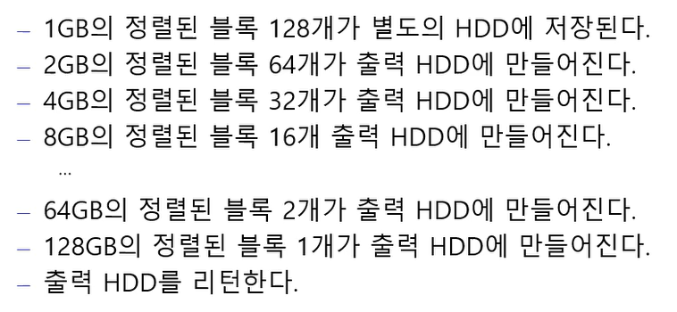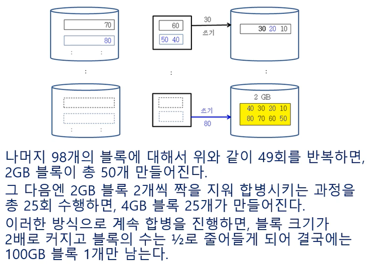 - 입력의 크기가 주기억 장치의 공간보다 큰 경우 (느림)