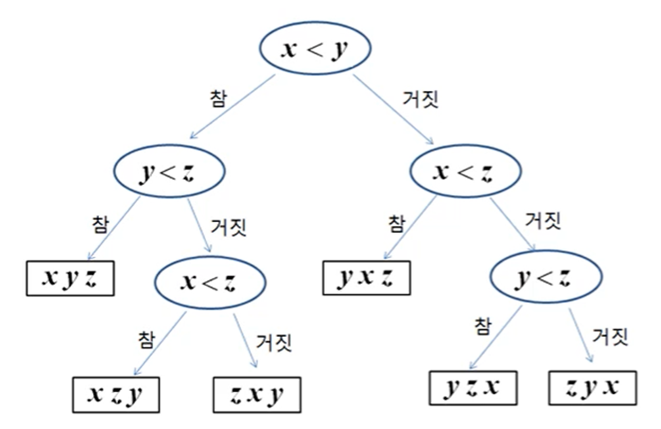 2. 서로 다른 3개의 숫자의 정렬 문제의 하한은?