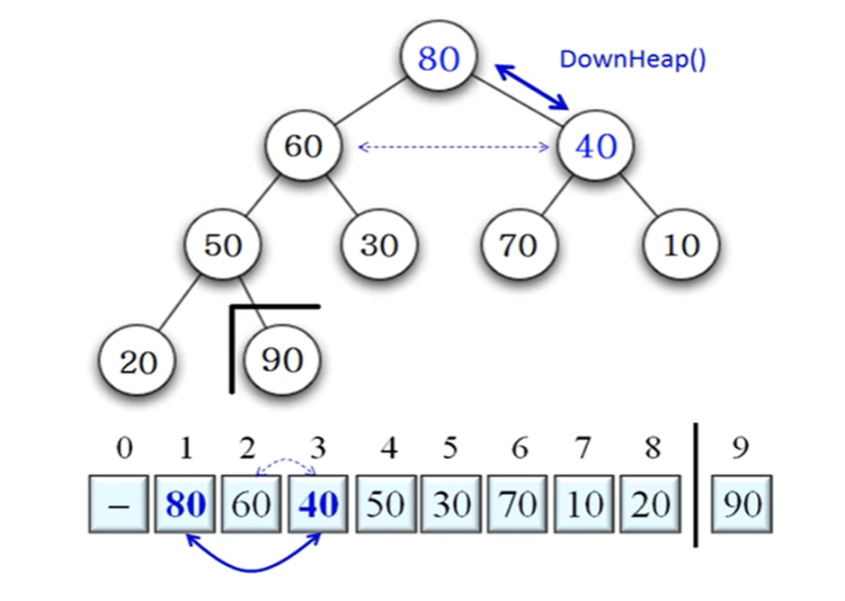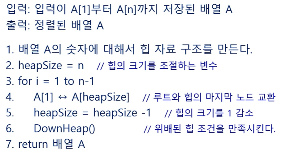 힙을 만드는 시간 O(n) / 변수 초기화 O(1) / for문 (n-1)번 / DownHeap O(logn)