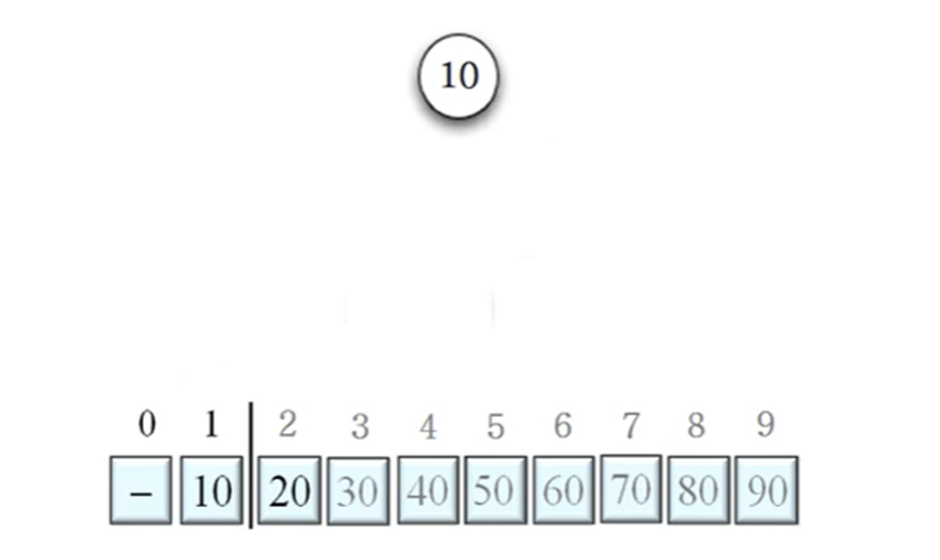 * 맨 처음에는 첫 번째 원소만이 정렬된 부분이다