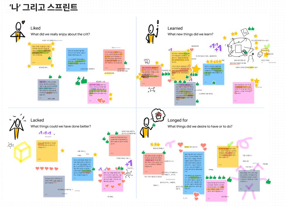 끝으로 Team Canvas에 팀 단위로 4L 회고를 남겼다