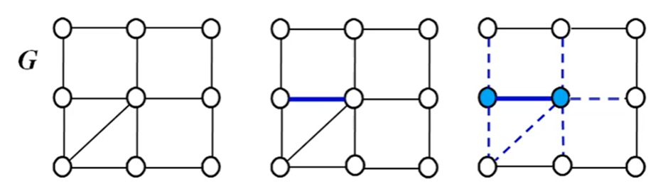 이 방식을 반복해 선분을 선택하다가 더 이상 선분을 추가할 수 없을 때 중단, 이 때 선택된 선분의 집합을 극대 매칭(maximal matching)이라고 한다 (매칭은 각 선분의 양쪽 끝점들이 중복되지 않는 선분의 집합, 여기서 새로운 선분을 더 추가할 수 없는 상태가 극대 매칭이다)