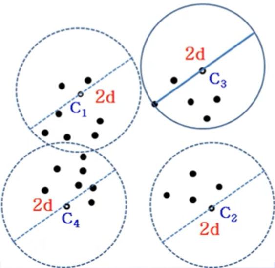 따라서 근사해의 가장 큰 그룹의 직경 OPT'는 2d보다 크지 않다
